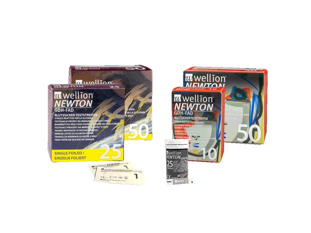 Prístroj Wellion NEWTON je ideálny tak na domáce meranie, ako aj pre profesionálne použitie. Typy balenia: prúžky vo fólii alebo testovacie prúžky v tube / 25 kusov alebo 50 kusov