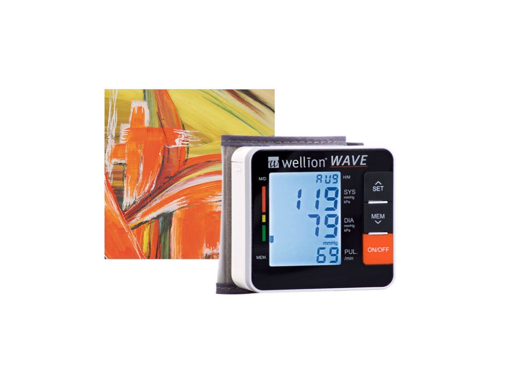 Meranie s tlakomermi Wellion WAVE je veľmi pohodlné. Podsvietený displej s mimoriadne veľkými číslicami je dobre čitateľný. Tlakomer Wellion WAVE na zápästie je praktický a ľahko sa používa.